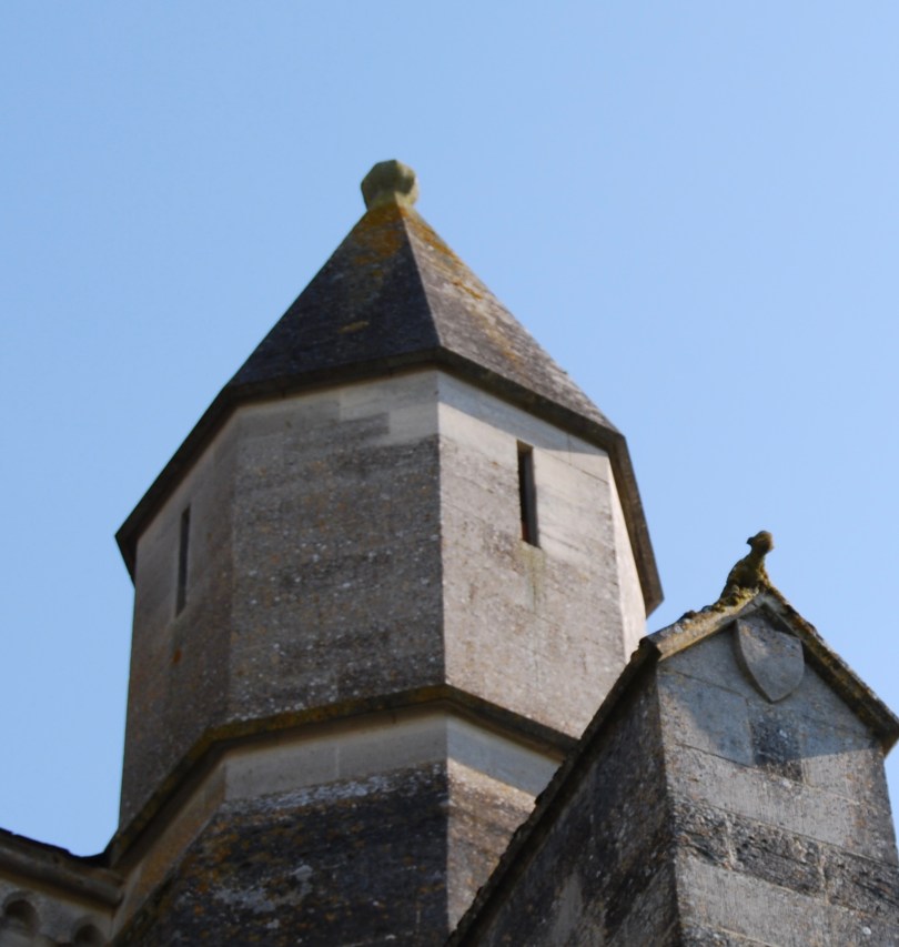 A gauche de l’entrée, s’élève une petite tour qui même aux combles et au clocher. Elle est de forme octogonale et l’escalier est en vis.